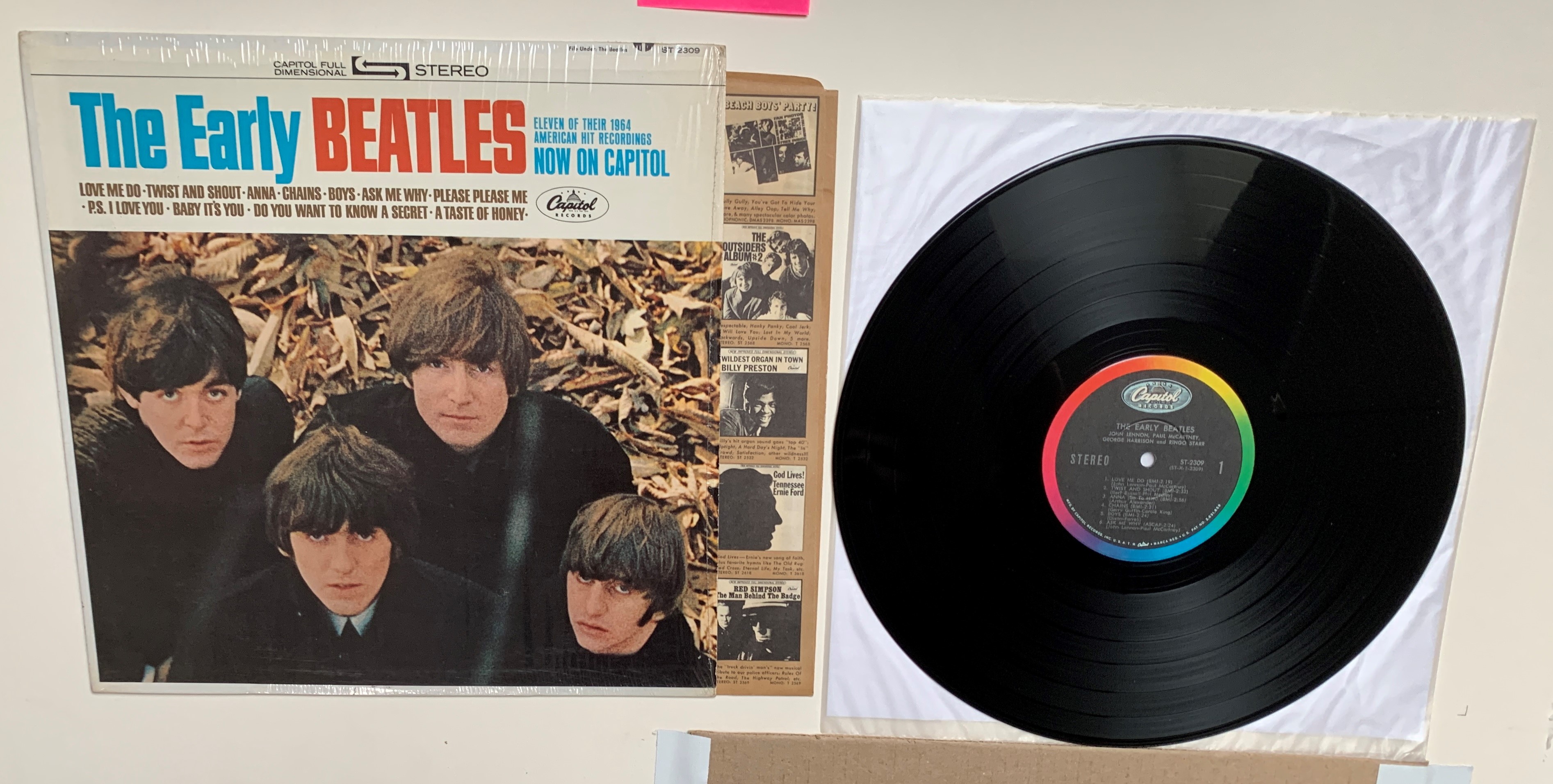 Offered is THE EARLY BEATLES album released by the Capitol Records Summer 1965. Stereo West Coast Copy. RIAA # 5. Includes the original tan colored Capitol Records Inner Sleeve.