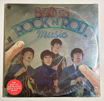Offered is The BEATLES Rock 'n Roll Music double album which was released in the Spring of 1976. Original silver foil cover with original round hype sticker on the front! Nice and tight shrink all around but has a few tiny tears in the shrink. The top edge back side has a few no-harm spots where the shrink split open slightly and there's a tiny bit of discoloration near the splits; doesn't show from the front side.