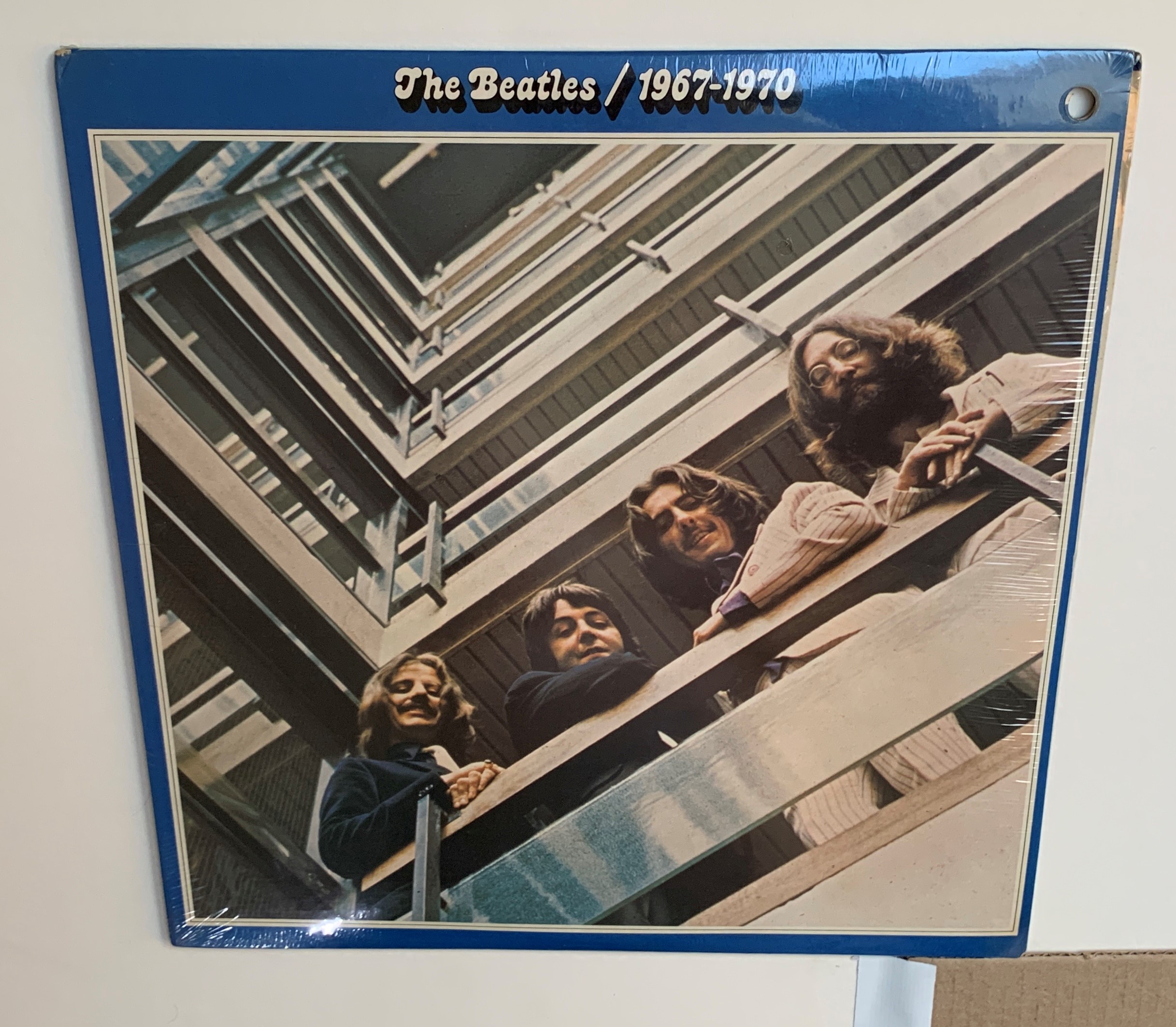 Offered is The BEATLES 1967-1970 double album which was released in the Spring of 1973. Includes the original blue hype sticker on the back cover. Nice and tight shrink all around.