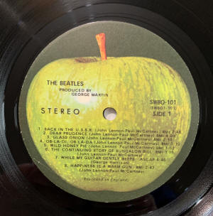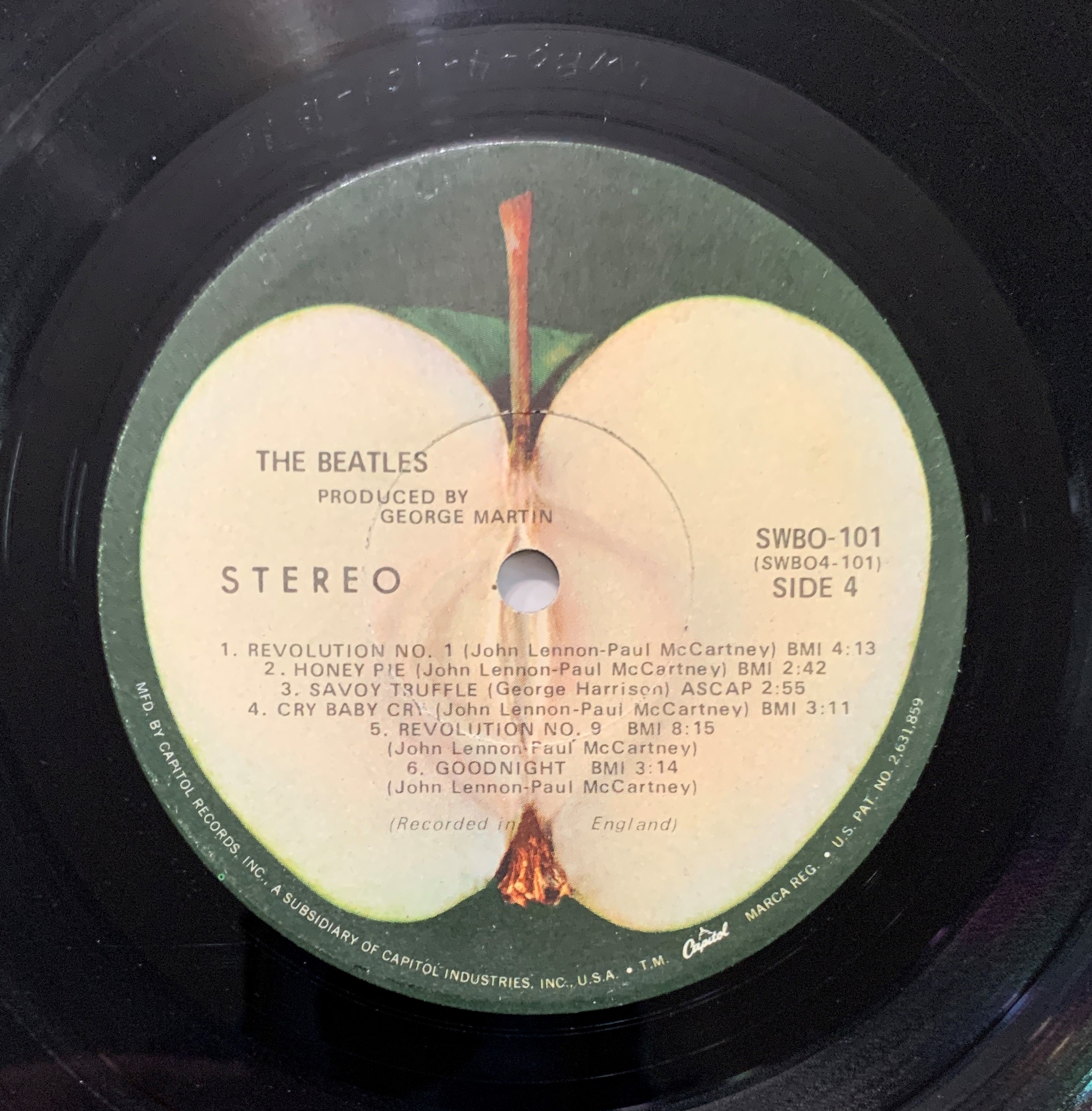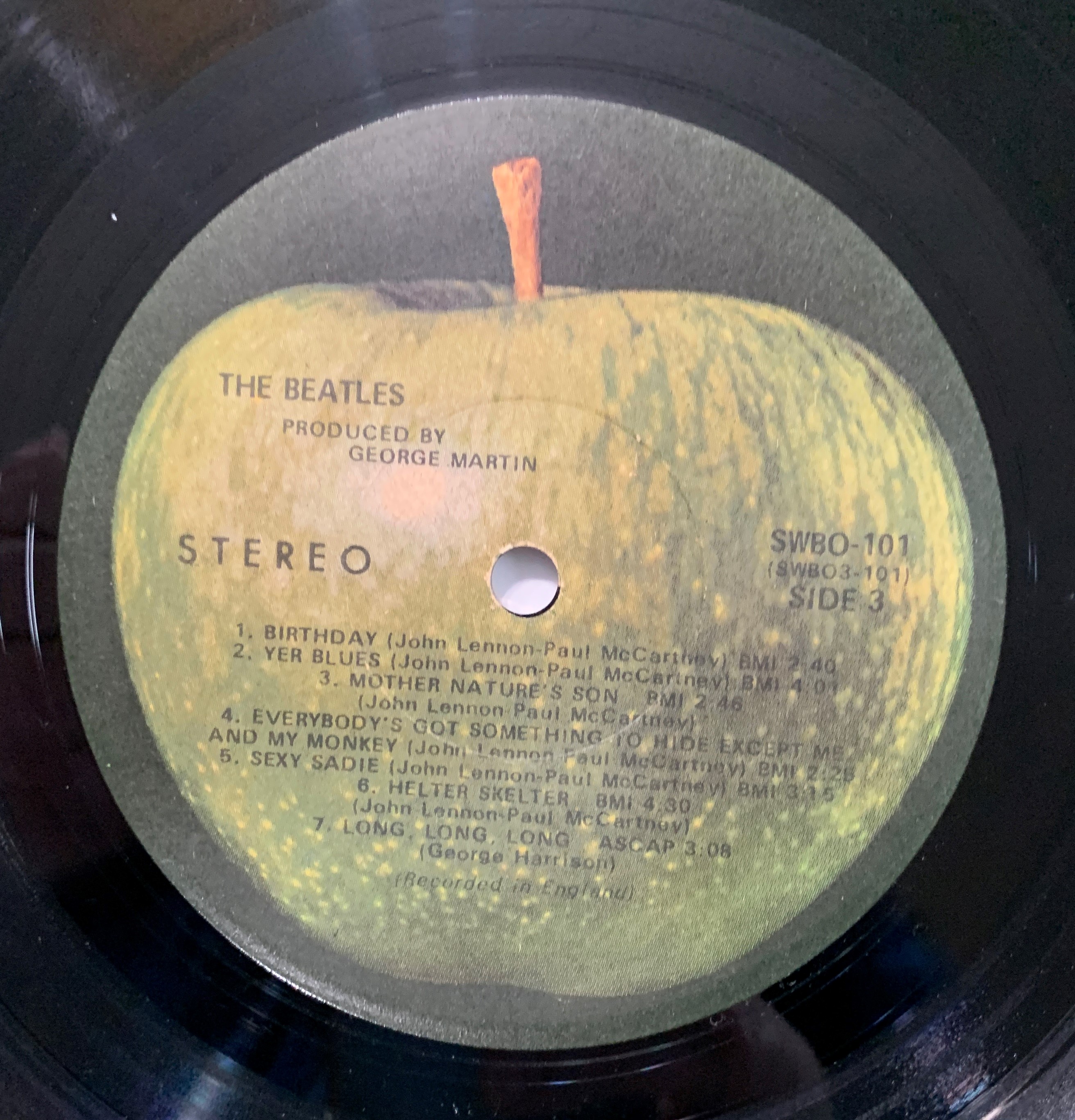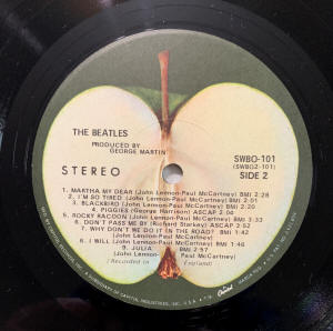 Side 1 was made with the B35 stamper and is in NM condition. Side 2 was made using the B37 stamper and is in NM condition. Side 3 was made using the A34 stamper and is in NM- condition. Side 4 was made using the B37 stamper and is in NM condition. Side 4 also contains 3 Song Title Errors: Revolution No. 1 instead of Revoultion 1; Revolution No. 9 instead of Revolution 9 and Goodnight instead of Good Night. The original poster is included and is in NM condition. The 4 Beatles photos are included in NM condition plus a pink separator page is included with the photos. The 2 original plain white inner sleeves are included but the disks will be shipped in high quality, anti-static inner sleeves.